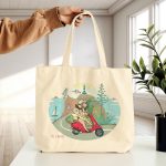Lleva contigo el espíritu de la aventura y la libertad con esta tote bag única, de grandes dimensiones y con bolsillo interior realizada en algodón orgánico de 280 grs.