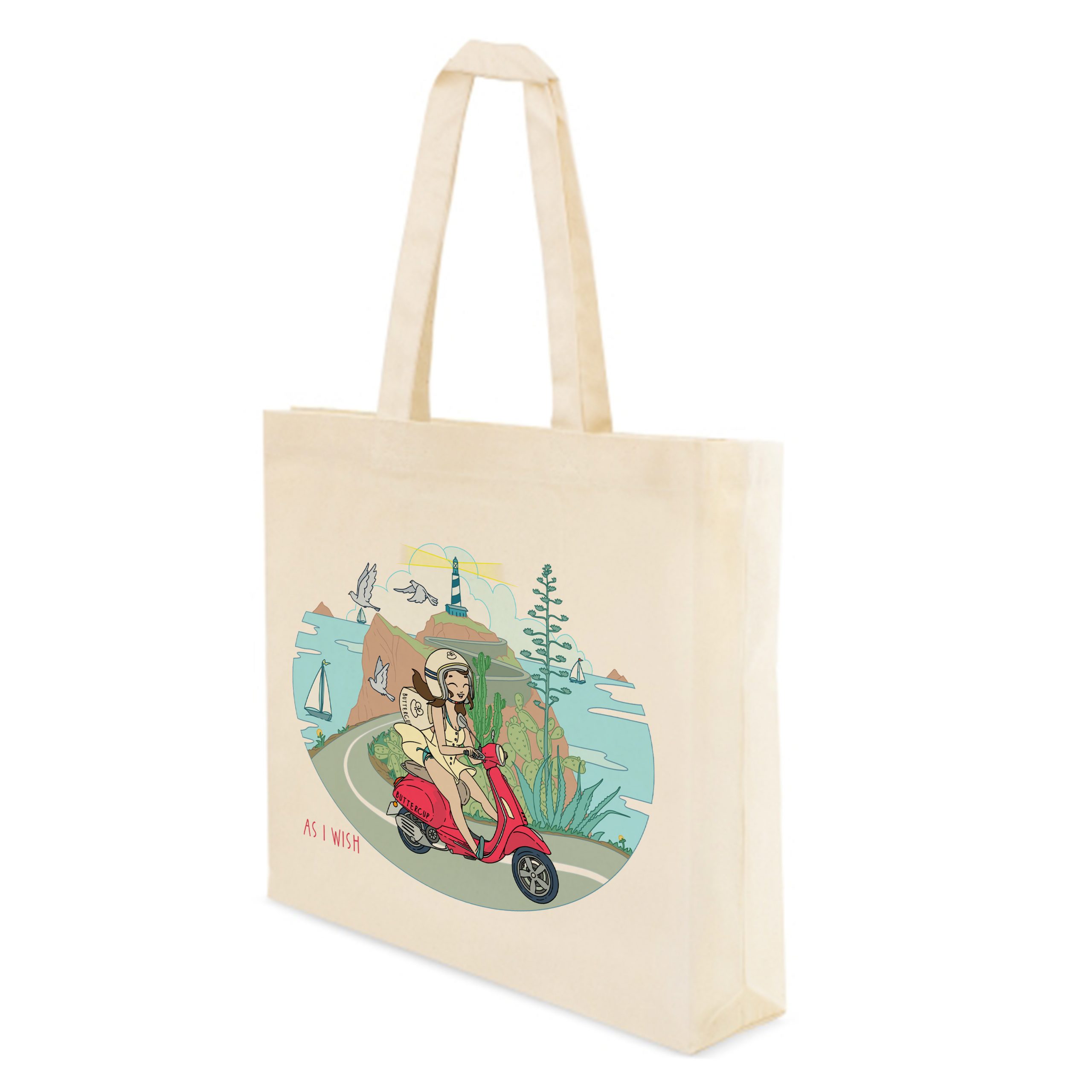 Lleva contigo el espíritu de la aventura y la libertad con esta tote bag única, de grandes dimensiones y con bolsillo interior realizada en algodón orgánico de 280 grs.